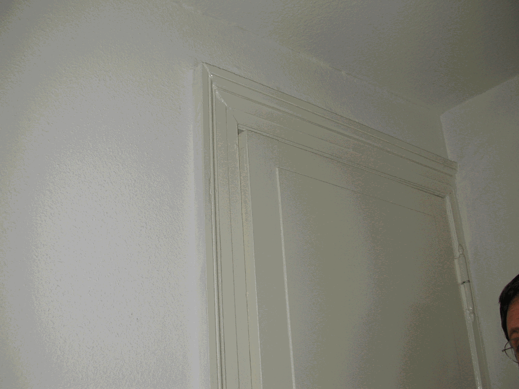 Türkassette, eingesetzt/reingesteckt (nicht verleimt). Durch die Jahre haben sich die Hölzer mit dem Rahmen verklebt.