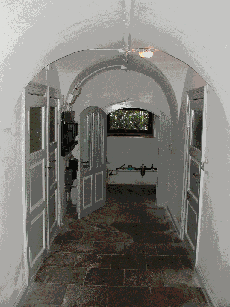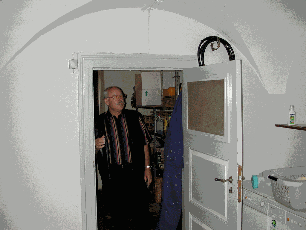 Der Kellervorraum mit einer sehr alten Tür. Das Glas im Rahmen ist original und wurde nicht gepresst, sondern gezogen (!).